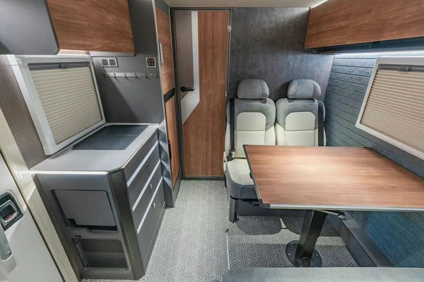为契合阿联酋市场对高端、耐用产品的严苛要求,“铸镕大道”在设计与工艺上展现了越界房车的精工思维。车身创新采用铆接航空铝合金厢体,在实现轻量化的同时,通过塔式柔性连接技术,大幅提升整体抗扭性与耐久性。车内布局兼顾多功能与人性化考量,在有限空间内科学规划起居、厨卫等多功能区域,充分满足长途旅居的舒适性与便利性需求。全车48V电路系统、500W太阳能板及3000W逆变器的加持,更确保了在远离电网的环境中,依然能享受不间断的能源保障。